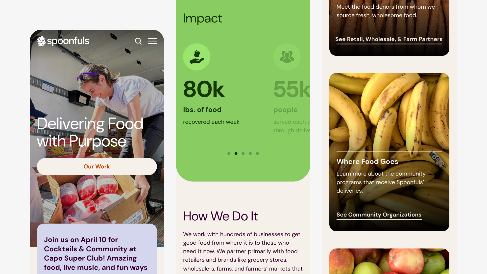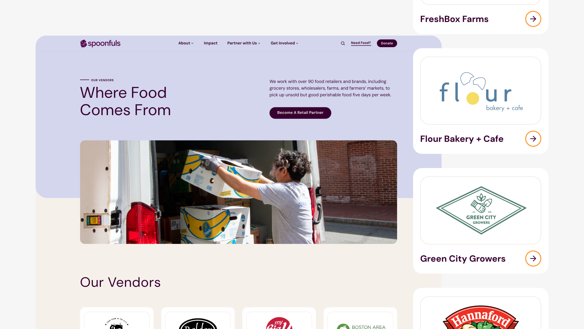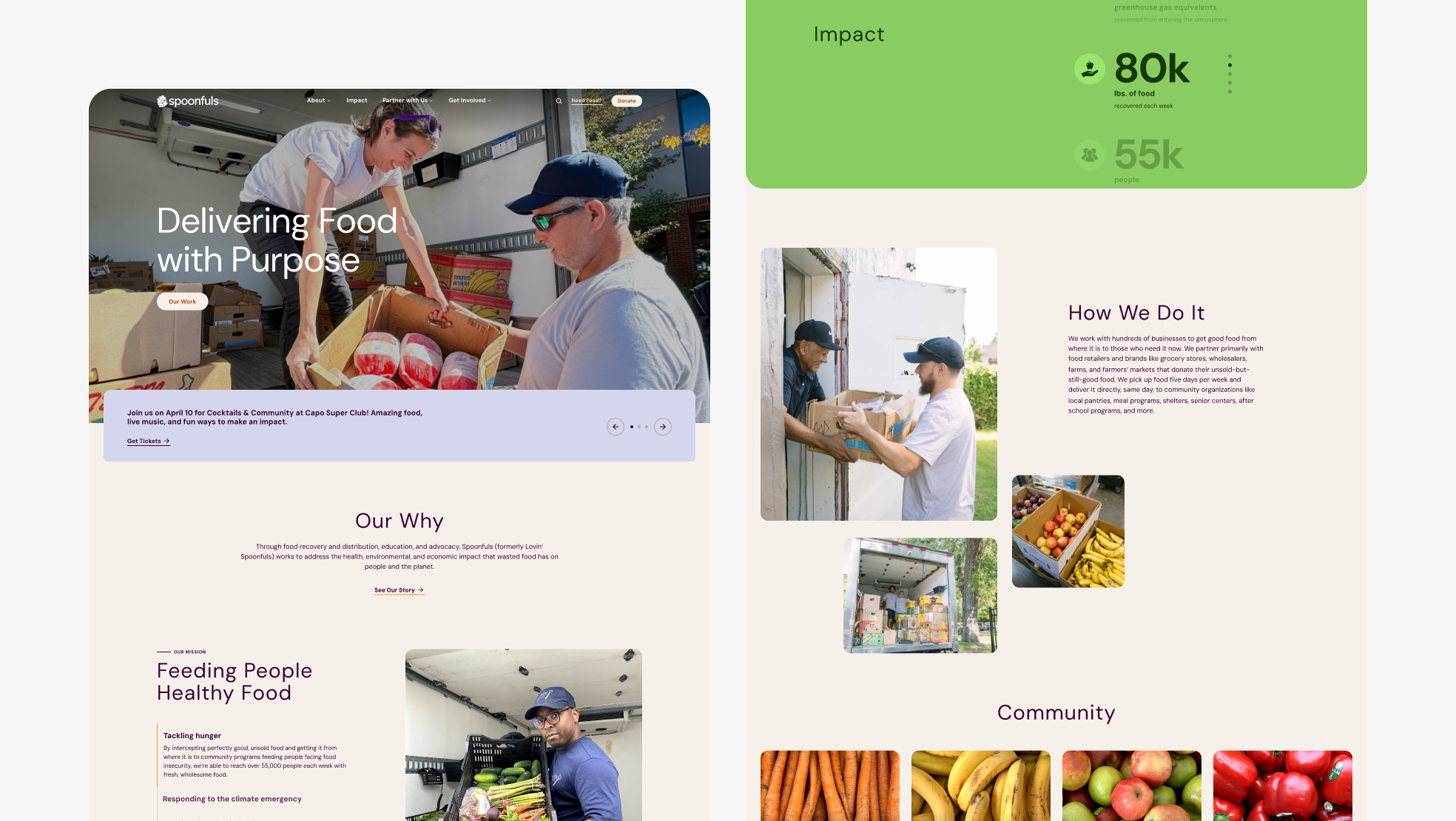 Spoonfuls is New England’s largest food recovery—rescuing fresh, healthy food that would otherwise be discarded. As they grew, they needed a modern brand and website that reflected their mission and made it easier for people to understand and support.